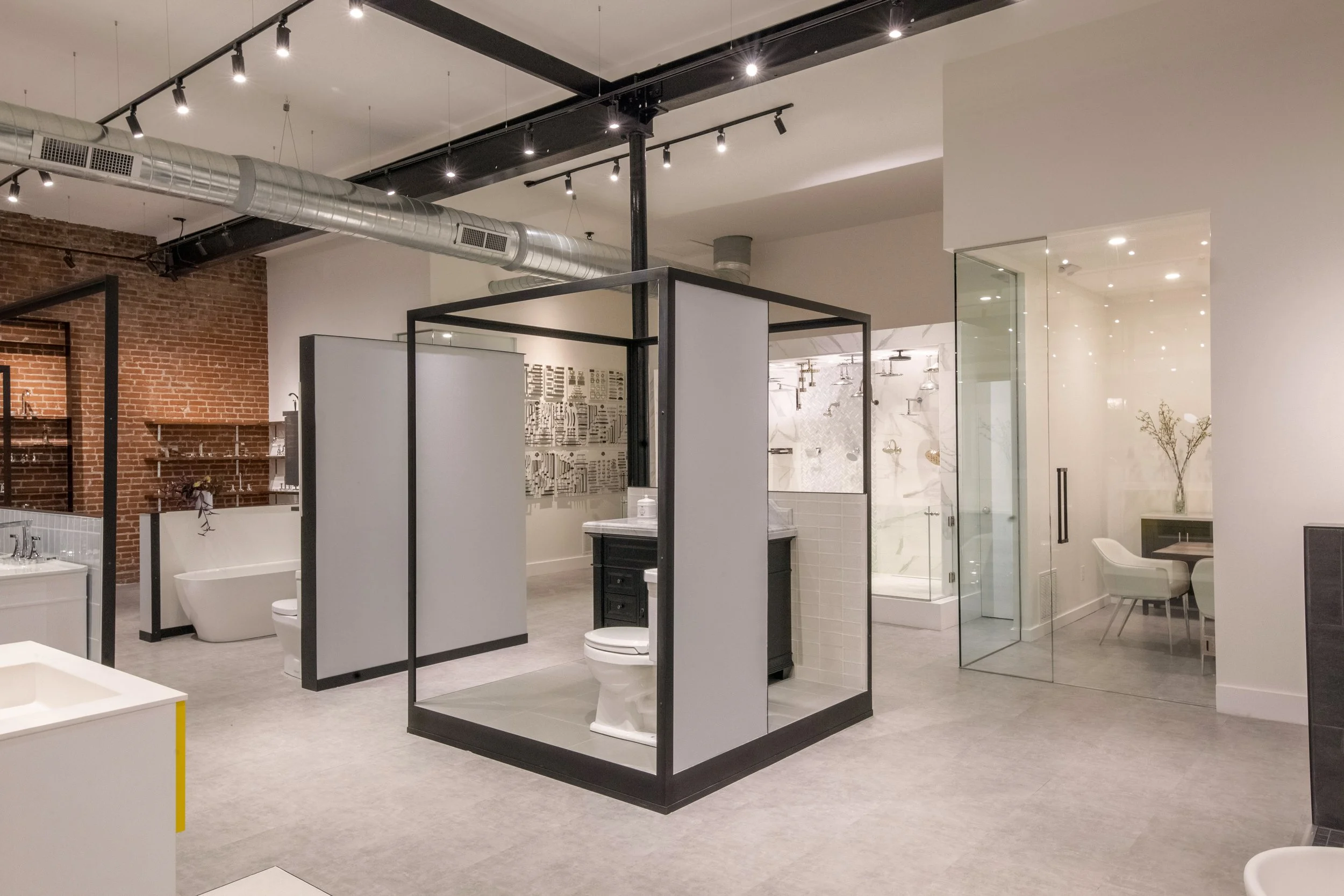 We transformed a 100-year-old hardware store into a modern showroom to give clients, including their designers, an immersive and hands-on experience. Every detail was thoughtfully considered—we custom-designed all the displays, tables, shelving, and office spaces. The result is a truly unique and flexible space that allows for the fixtures and products to change out over time.